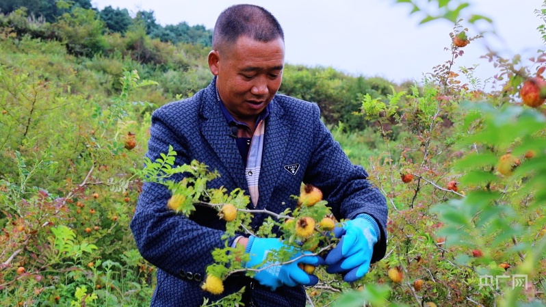 农户尹时晏正在采收刺梨(央广网记者 任振国 摄)