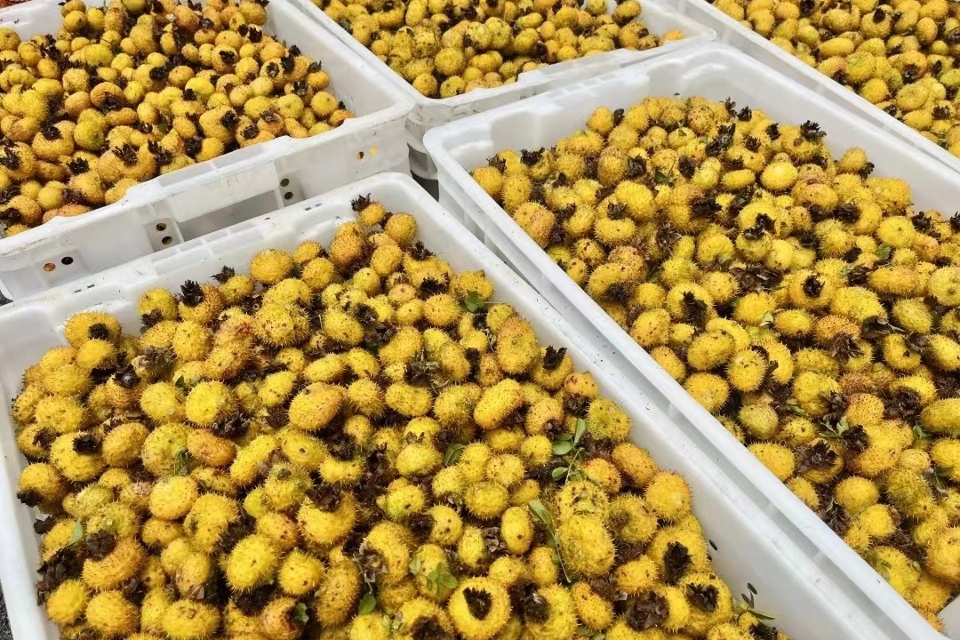 采摘装框的刺梨鲜果(央广网记者 任振国 摄)
